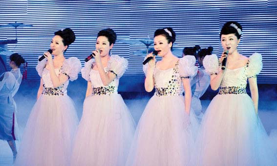 6月3日,首届中国农民艺术节开幕式文艺晚会在江苏昆山成功举行。图为雪人组合演唱《我们一起前行》。