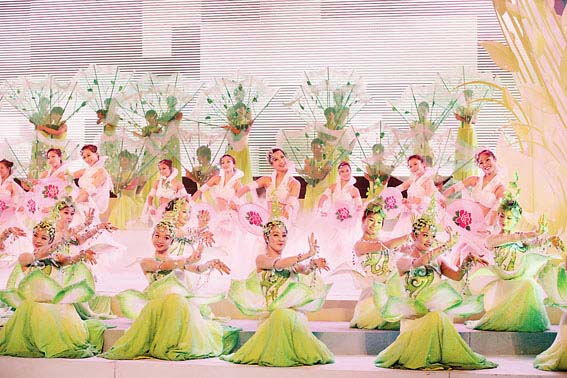 6月3日,首届中国农民艺术节开幕式文艺晚会在江苏昆山成功举行。图为歌舞《茉莉花开满庭香》。