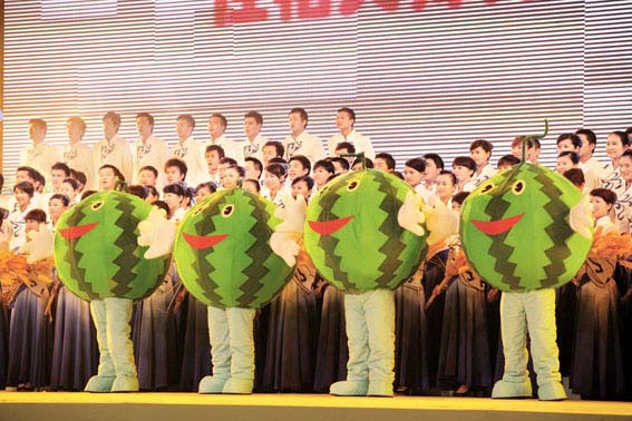 6月3日,首届中国农民艺术节开幕式文艺晚会在江苏昆山成功举行。图为开幕式文艺晚会精彩纷呈,受到当地群众的热烈欢迎。 |
