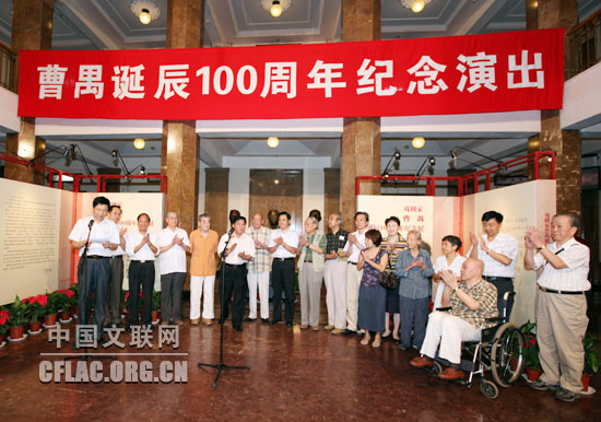 北京人艺新版《日出》历时两个多月打磨后,9月7日晚亮相首都剧场,为曹禺一百周年诞辰纪念演出拉开序幕。演出当晚,曹禺一百周年诞辰纪念演出启动仪式、曹禺一百周年诞辰纪念展和北京人艺艺术家书画作品展开幕式,同时在首都剧场大厅举行。中国文联党组书记、副主席胡振民以及文化部艺术司司长董伟,北京市委宣传部常务副部长陈启刚,北京人艺院长张和平,国家大剧院副院长邓一江,曹禺的女儿万方、万昭,著名表演艺术家蓝天野、朱旭等出席仪式。