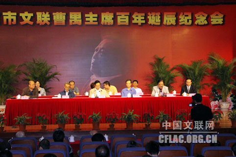 会议上,与会人员回顾了曹禺灿烂辉煌的一生。曹禺是新中国文艺事业的缔造者、组织者,是享有崇高威望的学者型的文艺界领导人,用一颗无比忠诚之心坚定地致力于繁荣发展首都的文学艺术事业。曹禺是向往光明的进步作家,创作的话剧徜徉于现实与历史之间,在中国当代戏剧舞台占据着重要位置。曹禺还是中西方文化交流的使者,创作的话剧作品在国外享有盛誉,成为外国人士理解中国社会发生变革的钥匙。大家认为曹禺的情感与祖国和民族的命运相连,他的创作与广大人民群众共呼吸、情相通。曹禺是一位将地道的“中国人的事、中国人的思想感情”用戏剧形式把民族内容和外来艺术形式结合得最完美、最光彩的大师。他严谨治学的态度和对艺术孜孜不倦的追求,成为新时期首都文艺工作者锐意进取、开拓创新的精神支柱。曹禺善于从希腊悲剧及莎士比亚、奥尼尔、易卜生等人创作的世界名著和中华民族优秀的传统典籍文化中汲取营养,创作出剧情丰富生动、戏剧冲突尖锐、格调浑厚凝重、人物刻画精妙、深受广大观众喜爱的作品。今天人们纪念他,就要学习他博采众长、精益求精、不断创新的精神,忠实履行文艺工作者的职责,坚持深入群众、深入生活、深入实际,时刻保持与时代同呼吸、与人民同命运,使我们创作的作品内涵丰富、思想深刻、情感真挚,弘扬真善美,为人的全面发展和社会全面进步发挥积极作用。