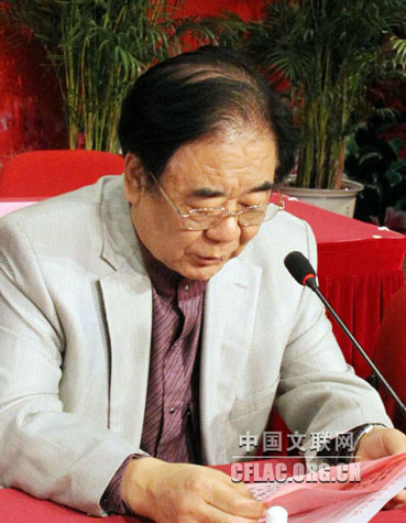 2010年9月24日,剧作家曹禺诞辰100周年。昨天,北京市文联召开曹禺诞辰百年纪念大会。中国文联党组成员、副主席廖奔,北京市委宣传部常务副部长陈启刚出席了纪念大会并发表讲话。北京市文联主席金铁霖出席会议并致辞。北京市文联党组书记、常务副主席朱明德,北京市文联老领导宋汎,北京市文联党组副书记、驻会副主席黎晶,北京市文艺人才“百人工程”代表、北京人艺副院长任鸣,以及曹禺先生的女儿万方等参加了纪念大会。图为金铁霖致辞。