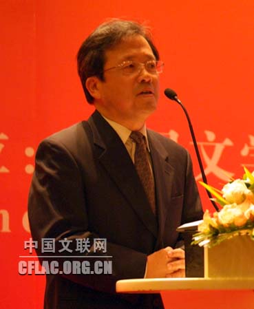 9月20日晚,第四届中国北京国际美术双年展颁奖仪式暨中国中青年美术家海外研修工程派遣仪式在京举行。图为中国文联党组成员、副主席冯远致辞。中国文联网 云菲 摄