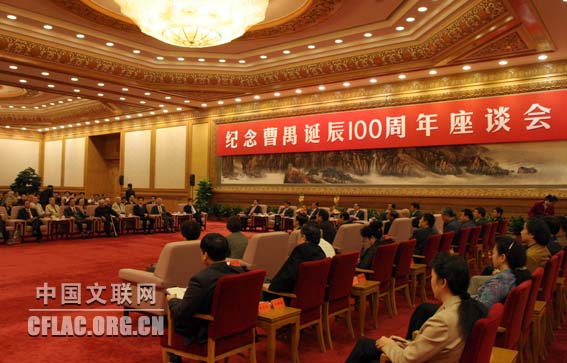 9月24日,由文化部、中国文联、北京市人民政府共同举办的纪念曹禺诞辰100周年座谈会在北京人民大会堂隆重举行。图为座谈会现场。中国文联网 彭宽 摄