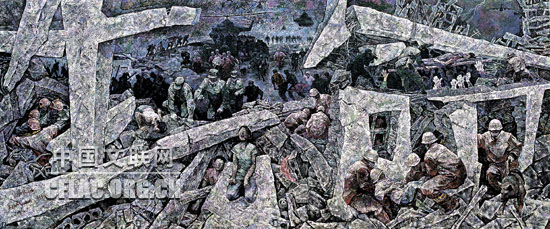 时间-生命——5?12汶川祭/油画/2008/600×250厘米
