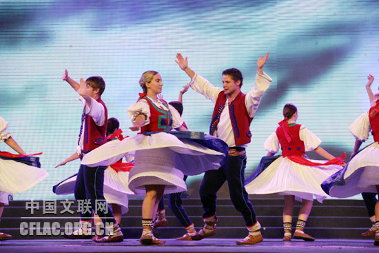 10月12日,第八届中国国际民间艺术节颁奖典礼暨中外艺术家大联欢在苏州市相城区体育艺术馆举行。图为捷克维萨坎民间舞团演出《瓦拉几亚民间舞》。中国文联网 孟祥宁 摄