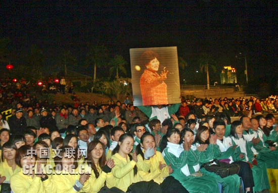 12月29日晚,中国文联、中国曲协“送欢乐、下基层”慰问团到福建省南安市武荣公园为当地群众演出。图为慰问演出受到南安市群众的欢迎。中国文联网 李亮 摄