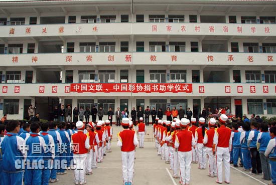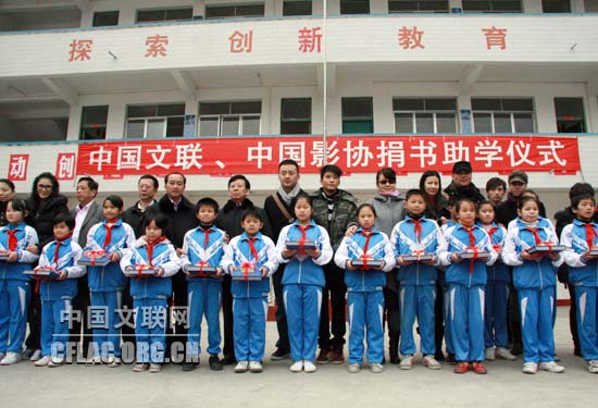 1月5日上午,中国文联、中国影协“送欢乐、下基层”慰问团走进广西东兰县武篆镇中心小学,向小学生们捐赠了包括《新华字典》《大众电影》合订本在内的图书礼包共计1000余份。图为图书捐赠仪式现场。中国文联网 张悦 摄