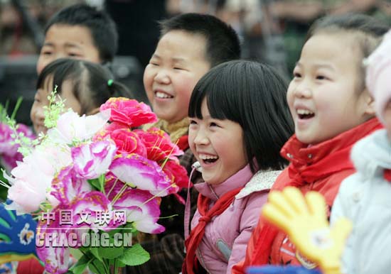 1月7日至8日,由中国文联、贵州省委宣传部主办的中国文联“送欢乐、下基层”赴遵义革命老区慰问活动举行。图为精彩演出让当地小朋友异常开心。中国文联网 孟祥宁、郭青剑 摄