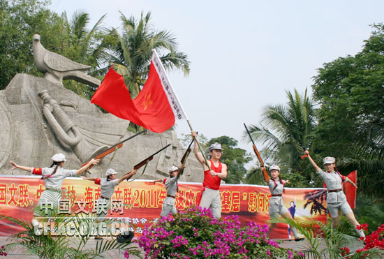1月9日,由中国文联、中国舞协、海南省文联组织文艺家深入到红色娘子军诞生地海南省琼海市的“送欢乐、下基层”文化惠民活动在红色娘子军纪念园举行演出。图为演出现场。中国文联网 彭宽 摄