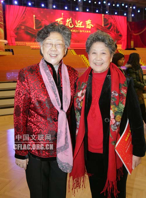 1月16日,“百花迎春——中国文学艺术界2011春节大联欢”在人民大会堂举行。图为艺术家在联欢会现场留影。中国文联网 李亮 摄