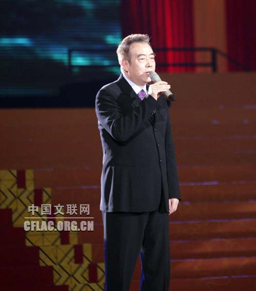 1月16日,由中国文联主办的“百花迎春——中国文学艺术界2011春节大联欢”在北京人民大会堂隆重举行。图为陈凯歌朗诵散文《我是福建人》。中国文联网 孟祥宁 摄