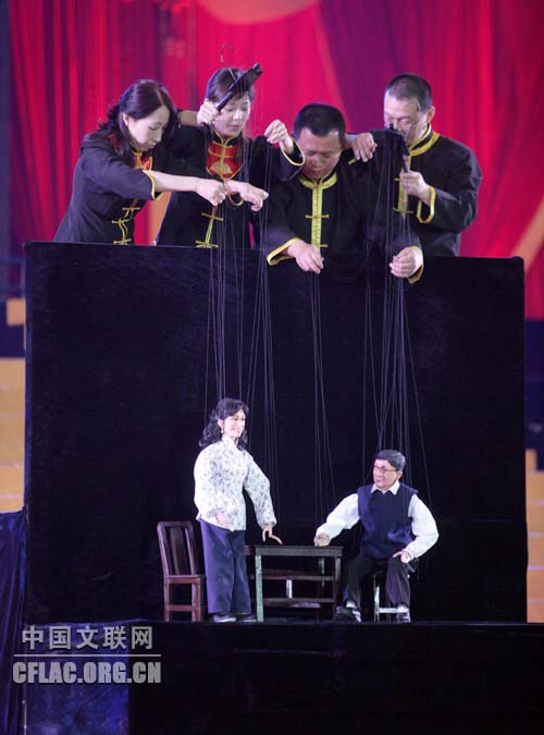 1月16日,由中国文联主办的“百花迎春——中国文学艺术界2011春节大联欢”在北京人民大会堂隆重举行。图为别出心裁的提线木偶剧《潜伏》。中国文联网 孟祥宁 摄