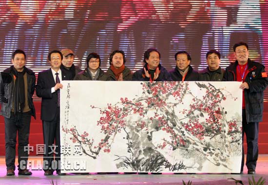 1月24日至26日,中国文联组织艺术家赴四川“送欢乐、下基层”。图为美术家赠送美术作品。中国文联网 彭宽 摄