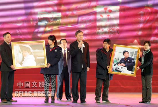 1月24日至26日,中国文联组织艺术家赴四川“送欢乐、下基层”。图为摄影家赠送摄影作品。中国文联网 彭宽 摄