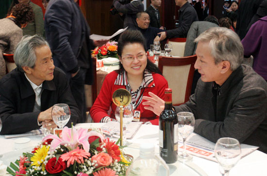 3月2日,2011年文艺界全国人大代表全国政协委员联谊会在中国文联新址中国文艺家之家举行。图为文艺界代表委员在联谊会上沟通交流。中国文联网 彭宽 摄