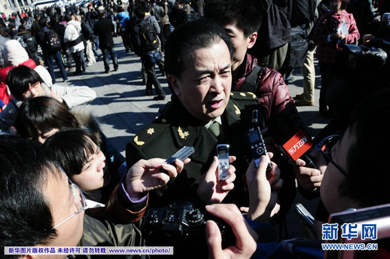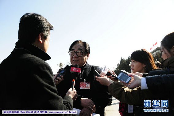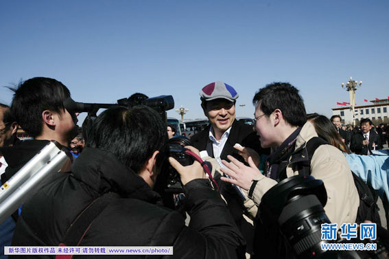 2011年3月3日,全国政协十一届四次会议在北京人民大会堂开幕。图为全国政协委员黄宏接受记者采访。新华网 孙巍 摄
