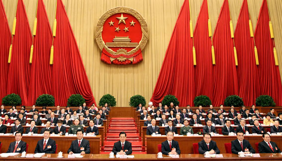 3月5日,第十一届全国人民代表大会第四次会议在北京人民大会堂开幕。党和国家领导人胡锦涛、温家宝、贾庆林、李长春、习近平、李克强、贺国强、周永康等出席会议。新华社记者 兰红光摄