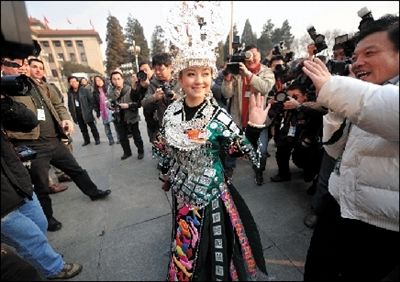 贵州团代表雷阿幼朵是名副其实的焦点。