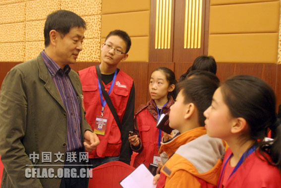 3月7日,濮存昕委员接受“小记者”采访。中国文联网 彭宽 摄