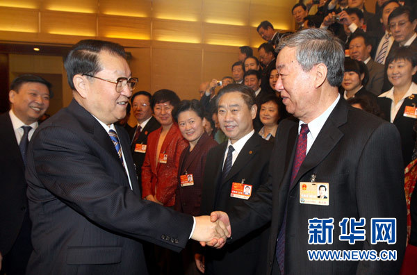3月8日,中共中央政治局常委李长春参加十一届全国人大四次会议山东代表团审议。 新华社记者姚大伟摄
