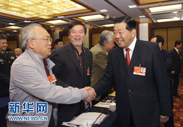 3月8日,中共中央政治局常委、全国政协主席贾庆林参加全国政协十一届四次会议文艺界委员讨论。新华社记者 饶爱民摄