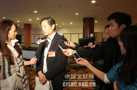 3月4日,陈国星委员接受媒体采访。中国文联网 彭宽 摄