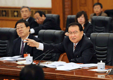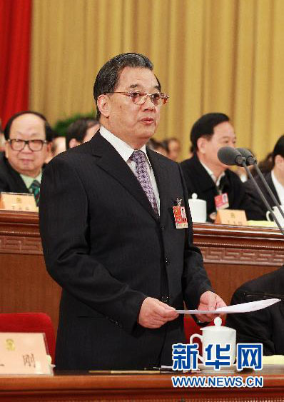 3月9日,全国政协十一届四次会议在北京人民大会堂举行第三次全体会议。李金华主持会议。 新华社记者鞠鹏摄