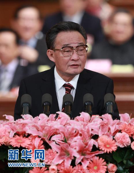 3月10日,十一届全国人大四次会议在北京人民大会堂举行第二次全体会议。全国人民代表大会常务委员会委员长吴邦国作全国人民代表大会常务委员会工作报告。新华社记者 庞兴雷摄