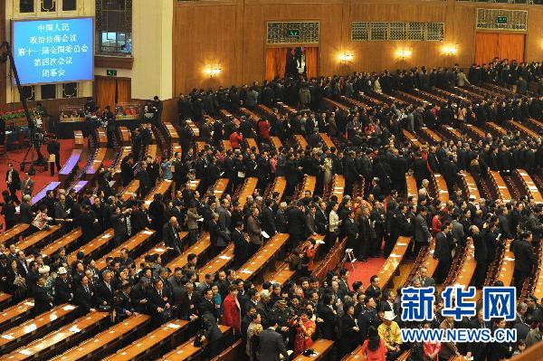 3月13日,中国人民政治协商会议第十一届全国委员会第四次会议在北京人民大会堂闭幕。这是委员们有序退场。 新华社记者王晔摄