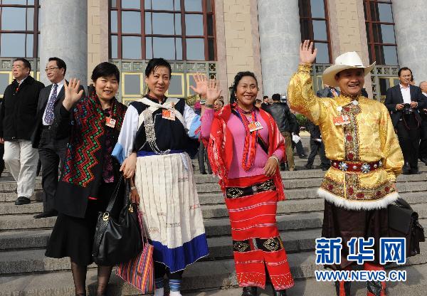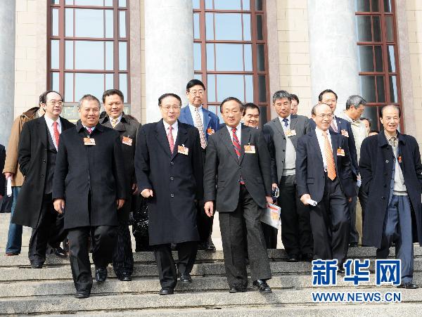 3月13日,中国人民政治协商会议第十一届全国委员会第四次会议在北京人民大会堂闭幕。这是闭幕会后,委员们步出人民大会堂。 新华社记者杨宗友摄