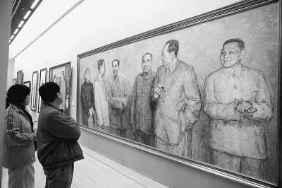 中国中共文献研究会、中国现代史学会、国家民委民族问题研究中心联合主办的“庆祝中国共产党成立九十周年中国油画展”今天在中国美术馆开幕。本次画展分为“党的光辉历程油画作品展”、“中国共产党人英烈肖像作品展”和“各族人民好写生作品展”三个单元,共有300多幅画参展。(上图 新华社记者吴晓初摄)画展时间为5月6日至16日,观众可领票免费参观。