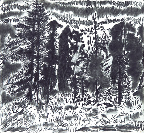 今年3月初为庆祝建党90周年画展,我们特意驾车再次前往井冈山进行实地写生。3月的井冈山阴冷潮湿雨多雾大,山上还不时地出现冰挂景观。此次写生主要是以井冈山五大哨口为主题。哨口山势险要,山路崎岖陡峭,道窄路滑,走在如此艰难的路途上,不时会联想到当年毛主席带领红军走过这里时的情形。我们一边走访参观一边写生,越来越被一种精神所感染,那就是“信念”和“理想”。中国共产党从开始之弱小逐渐地发展壮大,其间一次次的转危为安。不难想象任何一个环节的失误和退却都不会有今天的胜利。“高于天的革命理想”的必胜信念不仅鼓舞着当时的人们,如今也感染着、坚定着我们的意志。——王克举 |