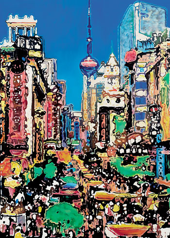 入选作品:春意盈申城(油画 180×130cm) 李芊