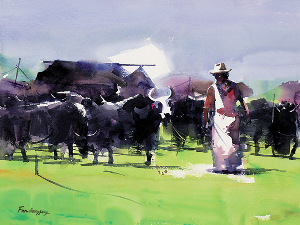 入选作品:高原阳光(水彩粉画 54×79cm) 范邦菁