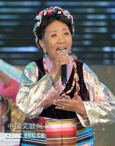 6月12日晚,中国文学艺术界纪念建党90周年主题系列演出之唱支山歌给党听——著名歌唱家演唱会(一)在民族文化宫大剧院举行。图为才旦卓玛演唱。中国文联网 董大汗 摄