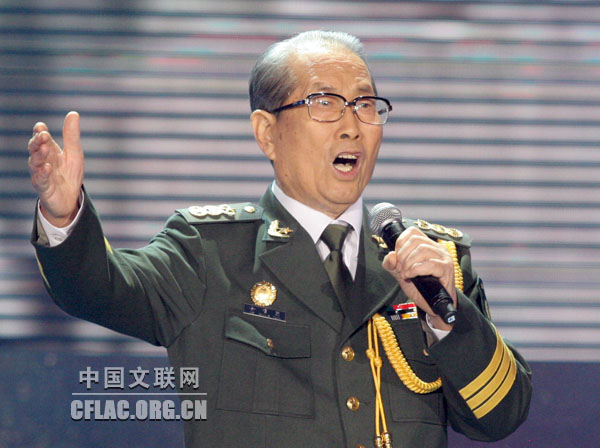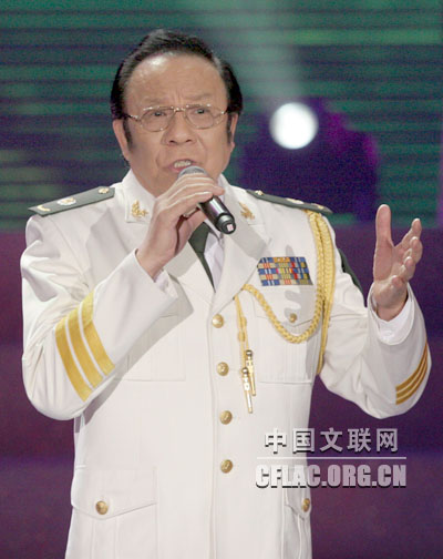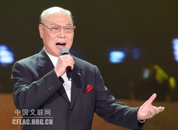 6月12日晚,中国文学艺术界纪念建党90周年主题系列演出之唱支山歌给党听——著名歌唱家演唱会(一)在民族文化宫大剧院举行。图为胡松华演唱。中国文联网 董大汗 摄