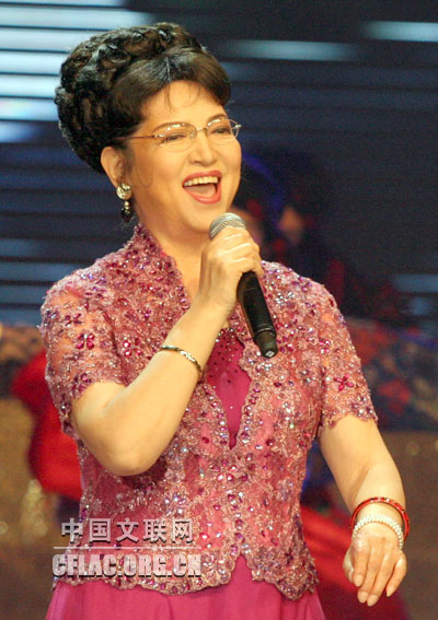 6月12日晚,中国文学艺术界纪念建党90周年主题系列演出之唱支山歌给党听——著名歌唱家演唱会(一)在民族文化宫大剧院举行。图为耿莲凤演唱。中国文联网 董大汗 摄