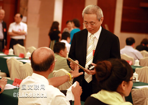 6月21日,中国文联第八届全国委员会第八次会议在京召开。图为来自澳门的陈志威等委员在一起。中国文联网 余宁 摄