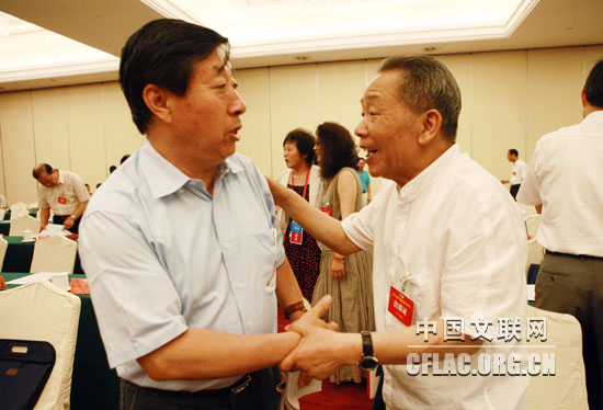 6月21日,中国文联第八届全国委员会第八次会议在京召开。图为刘大为委员、杨长槐委员在一起交流。中国文联网 余宁 摄