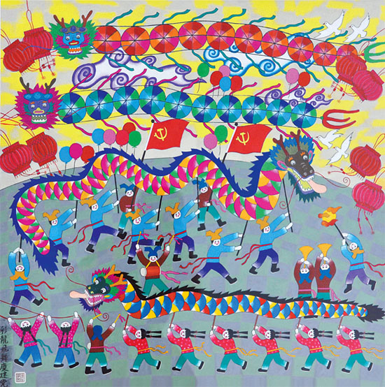上海金山农民画:彩龙飞舞庆建党[图]