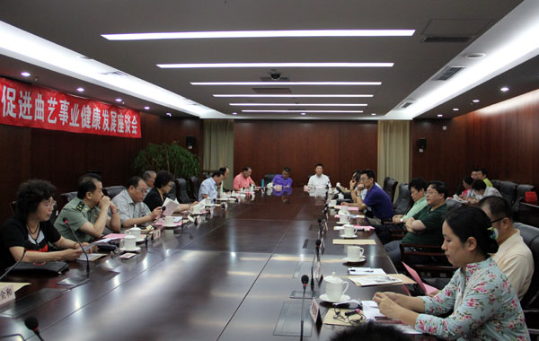 8月2日,中国曲协召开坚持“三贴近”·促进曲艺事业健康发展座谈会。罗扬、刘兰芳、董耀鹏、姜昆、吴文科、黄宏、朱光斗、刁惠香、李立山、刘全和、孙立生、王登渤、康尔等参加座谈。与会者一致认为,当下曲艺事业发展形势令人振奋,新人新作不断涌现,但真正能够让人记住的并不多,量与质不成正比的现象较为突出,应当深刻反思。