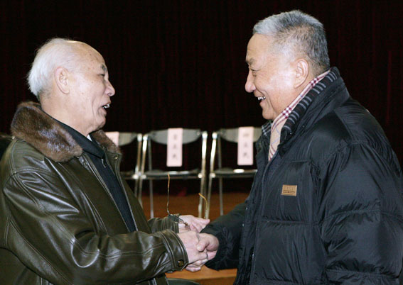 12月26日,由中国文联离退休干部局和中国艺术报共同主办的亲历中国文联改革开放30年老同志座谈会在京举行。图为老朋友在座谈会上相见格外高兴。中国文联网 孟祥宁 摄