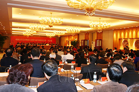 中国文联第八届全国委员会第二次会议会场。中国文联网 余宁/摄