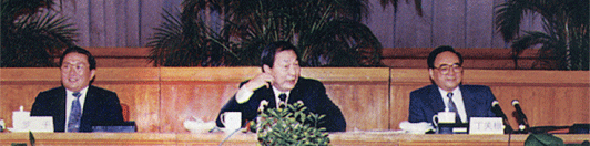 1996年12月18日,中共中央政治局常员、国务院副总理朱镕基为出席大会的代表作经济形势报告。。