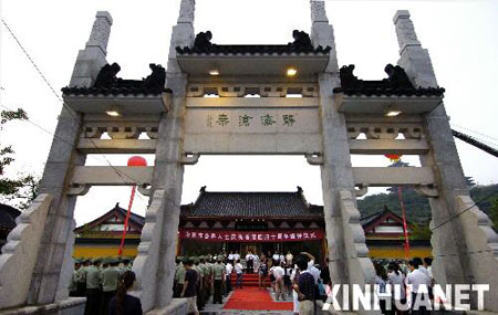 7月1日,南京各界群众千余人在南京静海寺举行集会和撞钟仪式,庆祝香港回归十周年。新华社记者 孙参摄