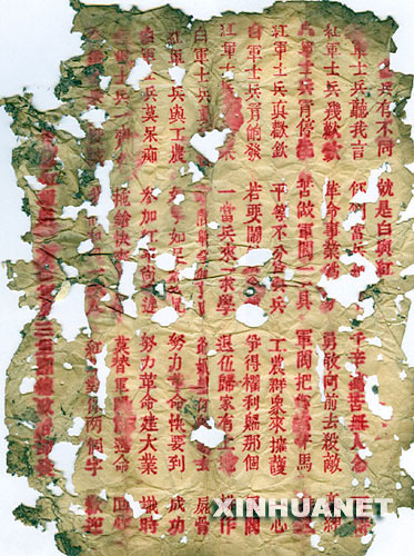 这是王金昌收藏的中国工农红军第一方面军第三军团总政治部布告(资料照片)