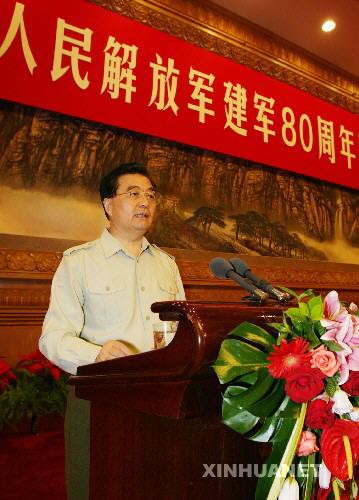 7月27日,中央军委在北京人民大会堂隆重举行庆祝建军80周年驻京部队老战士座谈会。中共中央总书记、国家主席、中央军委主席胡锦涛在座谈会上发表重要讲话。