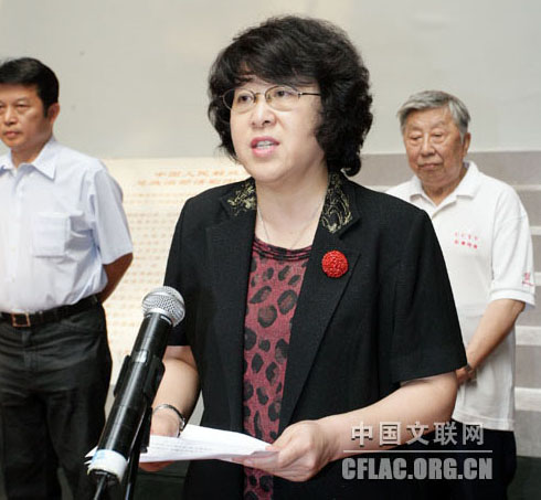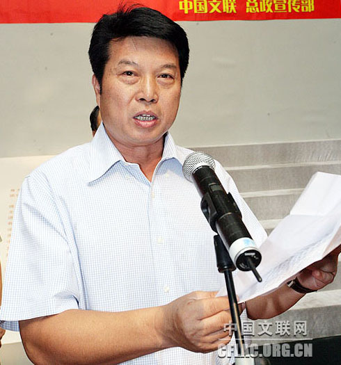 中国文联党组副书记、副主席覃志刚在赠送仪式上致词。本网记者
