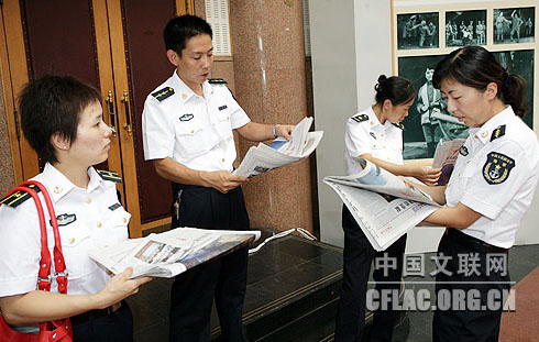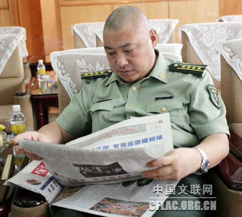 部队代表认真阅读报纸。本网记者 孟祥宁